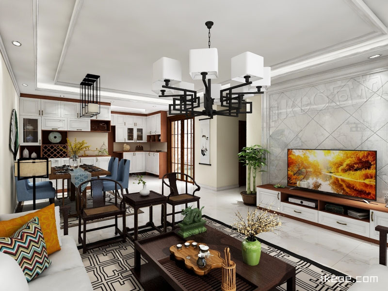 时尚户型的设计,金丝樱桃木与米白皮纹的搭配显现出深邃的时尚格调,将时尚和现代元素完美的融合到一起精致优雅的体现出前卫的中式简约设计。